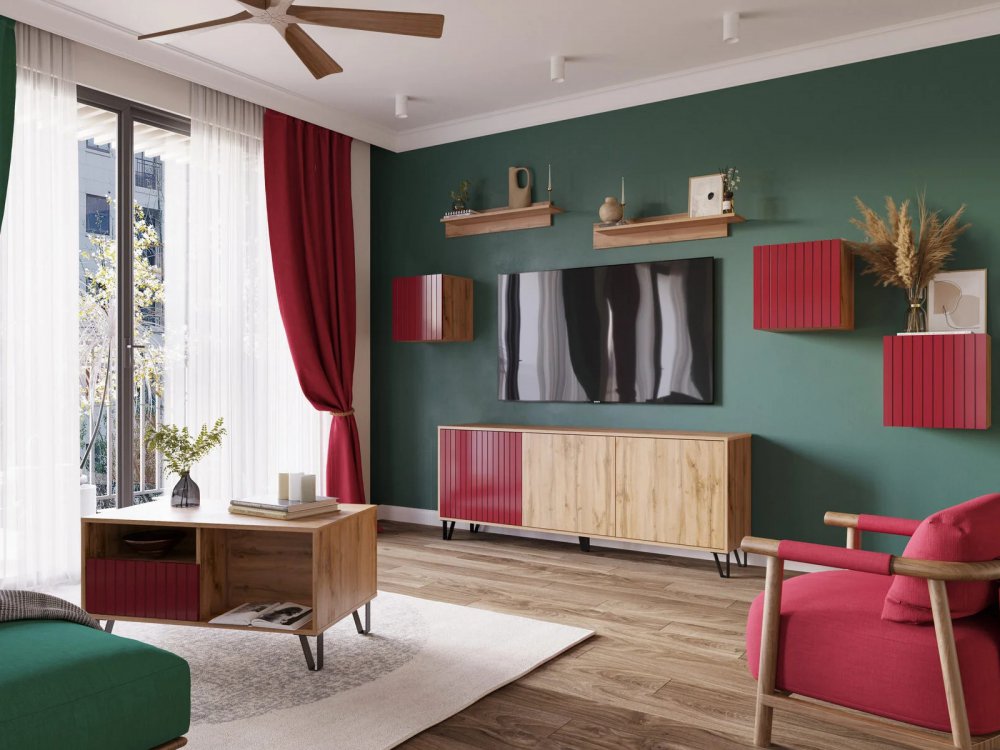 Цена указана за комплектацию: Журнальный стол, Шкаф навесной (3шт), Тумба ТВ, Полка (2шт)