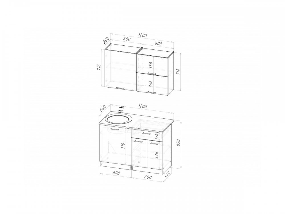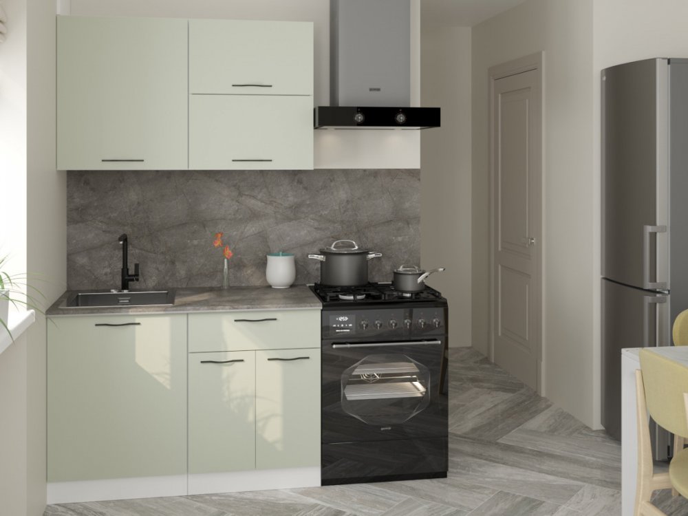 Мойка, смеситель, стеновая панель и посудосушитель в комплект гарнитура не входят.