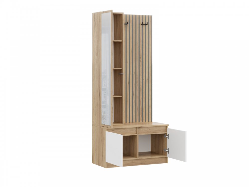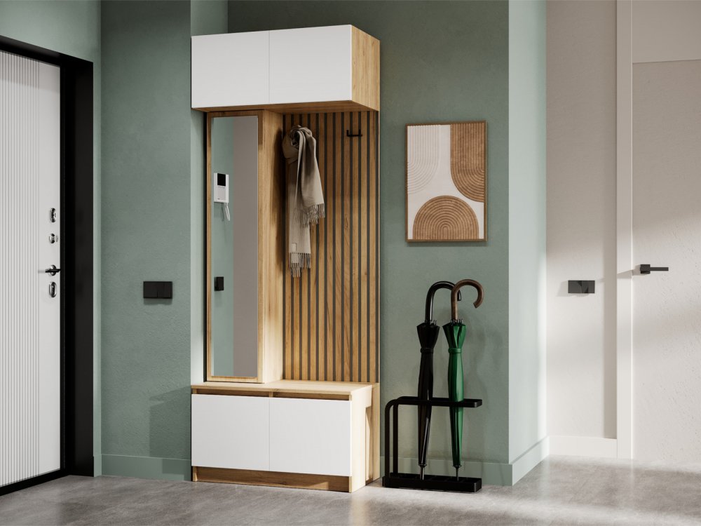 Антресольная секция может является дополнением БОСТОН ЛАЙТ Прихожей, если секцию установить над прихожей. Общая высота прихожей в данном случае будет соответствовать высоте всех шкафов БОСТОН ЛАЙТ и равна 2100 мм. Для соединения пенала БОСТОН ЛАЙТ Прихожей и БОСТОН ЛАЙТ Антресольной секции в фурнитуру изделий заложены межсекционные стяжки.