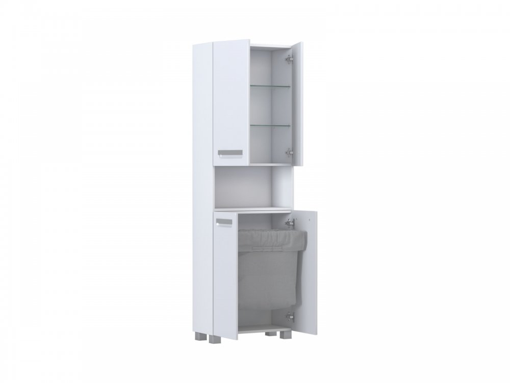 Оснащение:4 дверцы; 1 корзина для белья; петли с механизмом доводчика, 2 полки стеклянные, ручки врезные металлические хромированные, 4 опоры квадратные регулируемые. Поставляется в разобранном виде.