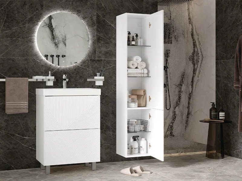 Материалы тумбы: МДФ, влагостойкая ЛДСП, полимерное покрытие ПВХ, европейская фурнитура