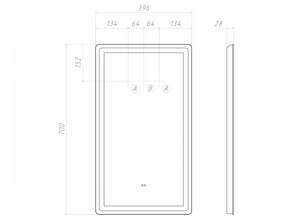 Подсветка фронтальная по периметру, с цветовой температурой 5000К – нейтральный белый, управление подсветкой бесконтактный выключатель «на взмах»