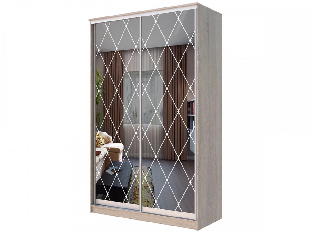 Шкаф-купе Хит зеркальный с пескоструйным рисунком – это красиво оформленная мебель, которая одновременно выполняет функции хранилища для вещей и является элегантным дополнением для любого интерьера.