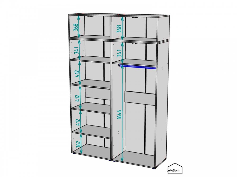 • У шкафа торцевая пластиковая ручка (100см), а у антресоли дверь без ручки (система открывания PUSH to OPEN).
